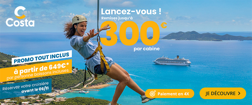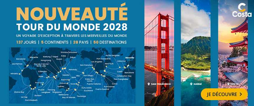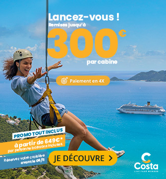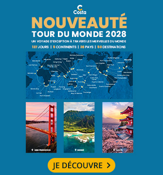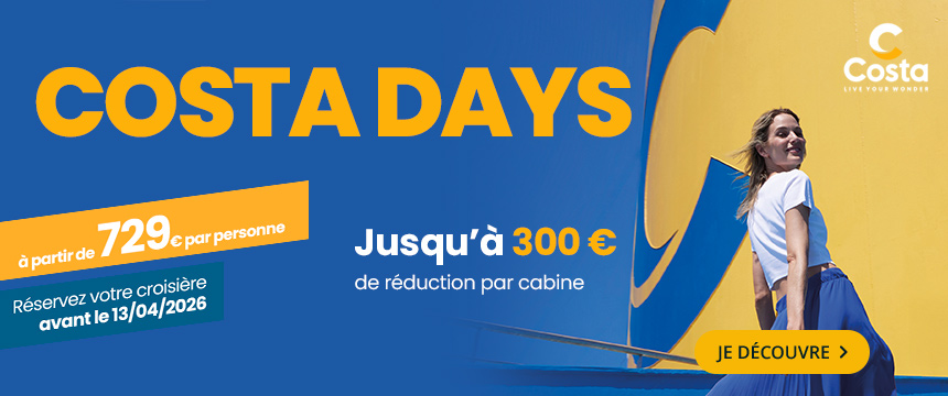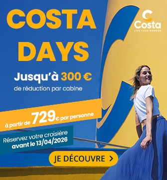 Costa croisières, compagnie incontournable de croisière en Europe, vous proposent des voyages vers les Iles Grecques ou la Méditerranée à bord de prestigieux bateaux : Costa Toscana, Costa Deliziosa, Costa Diadema ou également le Costa Smeralda. Avec des départs de Marseille, Venise ou Barcelone, les bateaux Costa construits en Italie, offrent des services de luxe.